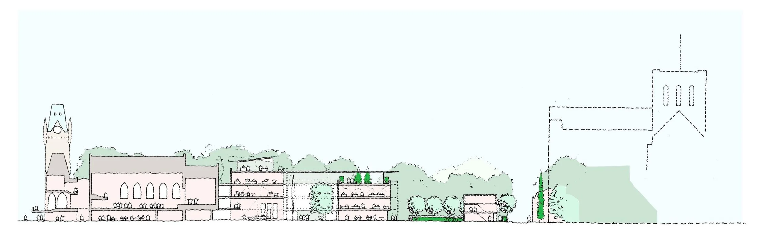 Commissioned by Winchester City Council, the masterplan reviewed the Guildhall complex with potential new council offices and housing. The study was focussed on the urban grain and scale, and the