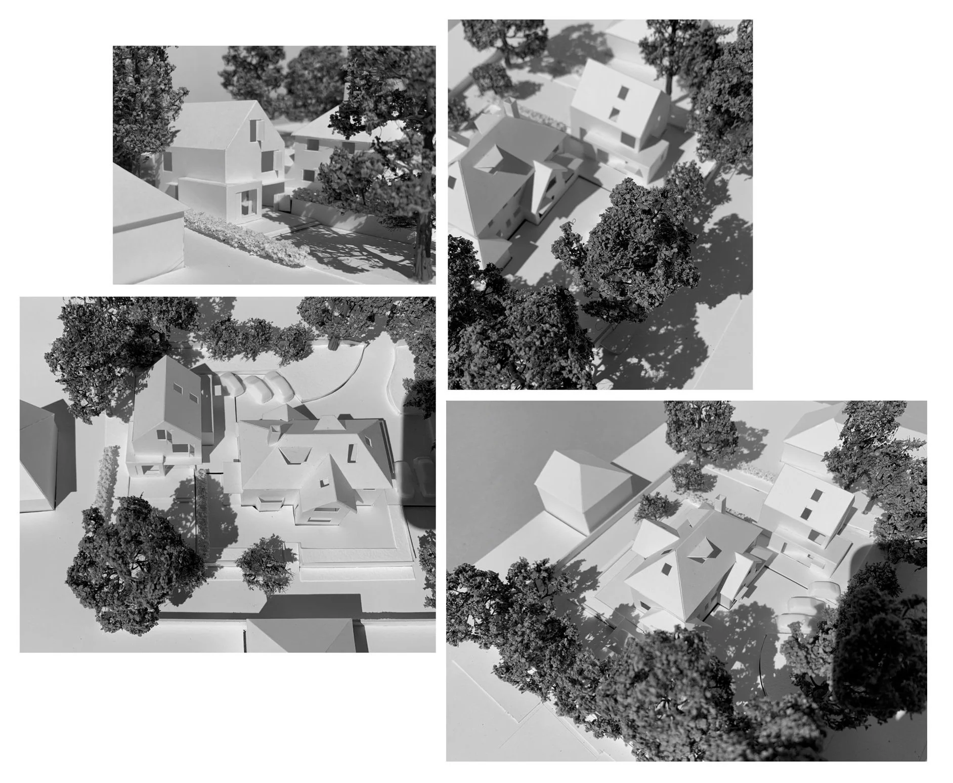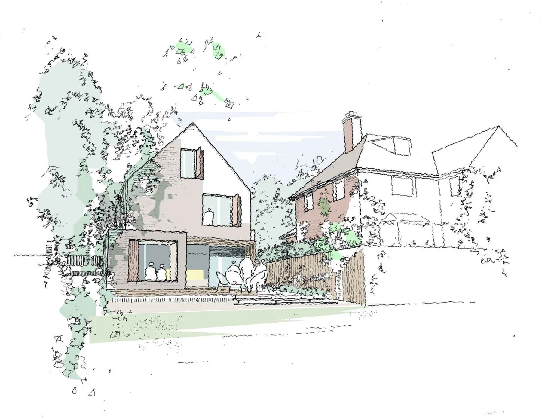 It was important to the client that the new house was referential and respectful to its older sibling. We made use of a half storey change in level from entrance to garden, that reduced scale and provided some separation.