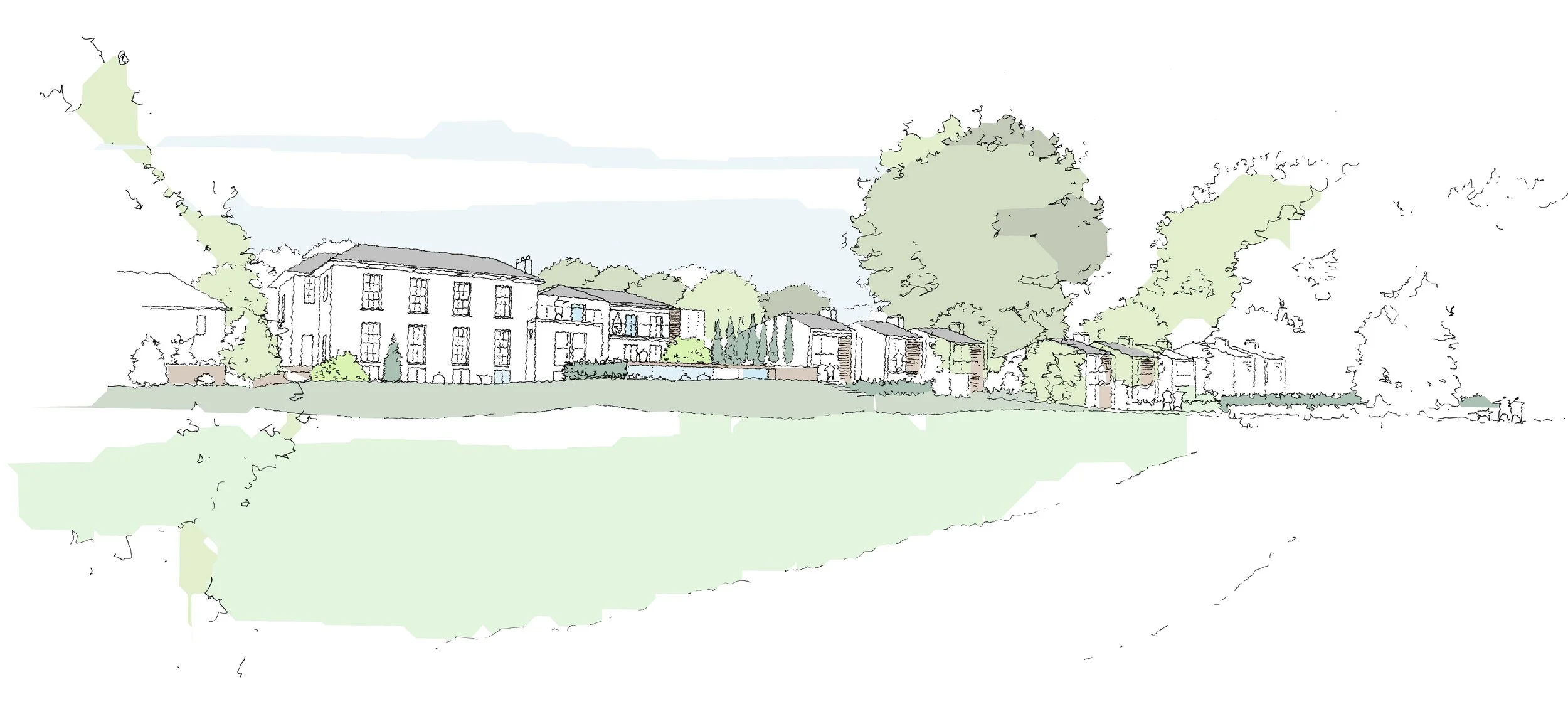 This senior living “Empty nester” project looked to re-purpose the original period house on the site into 6 large apartments, with the potential addition of a spa and health club.