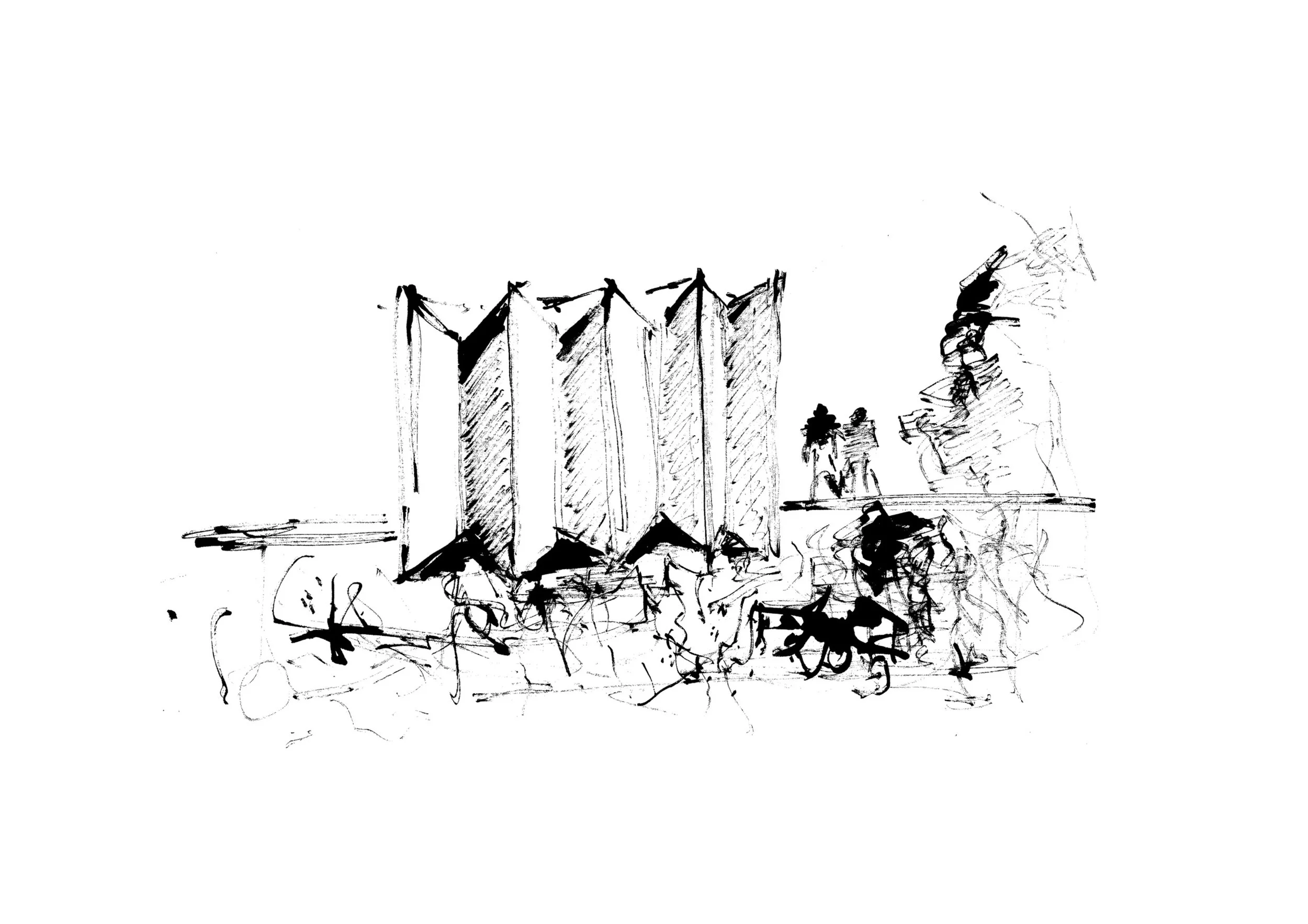 The brief demanded a strong landmark identity, that also reflected a circular seating pattern for groups of either 8 or, 16. Research indicated that group dialogue is improved when participants are seated at a lower height, which encourages leaning forwards, as opposed to a more defensive posture when sat upright. This led to a solution where two stepped seating rings are sunk into the floor.