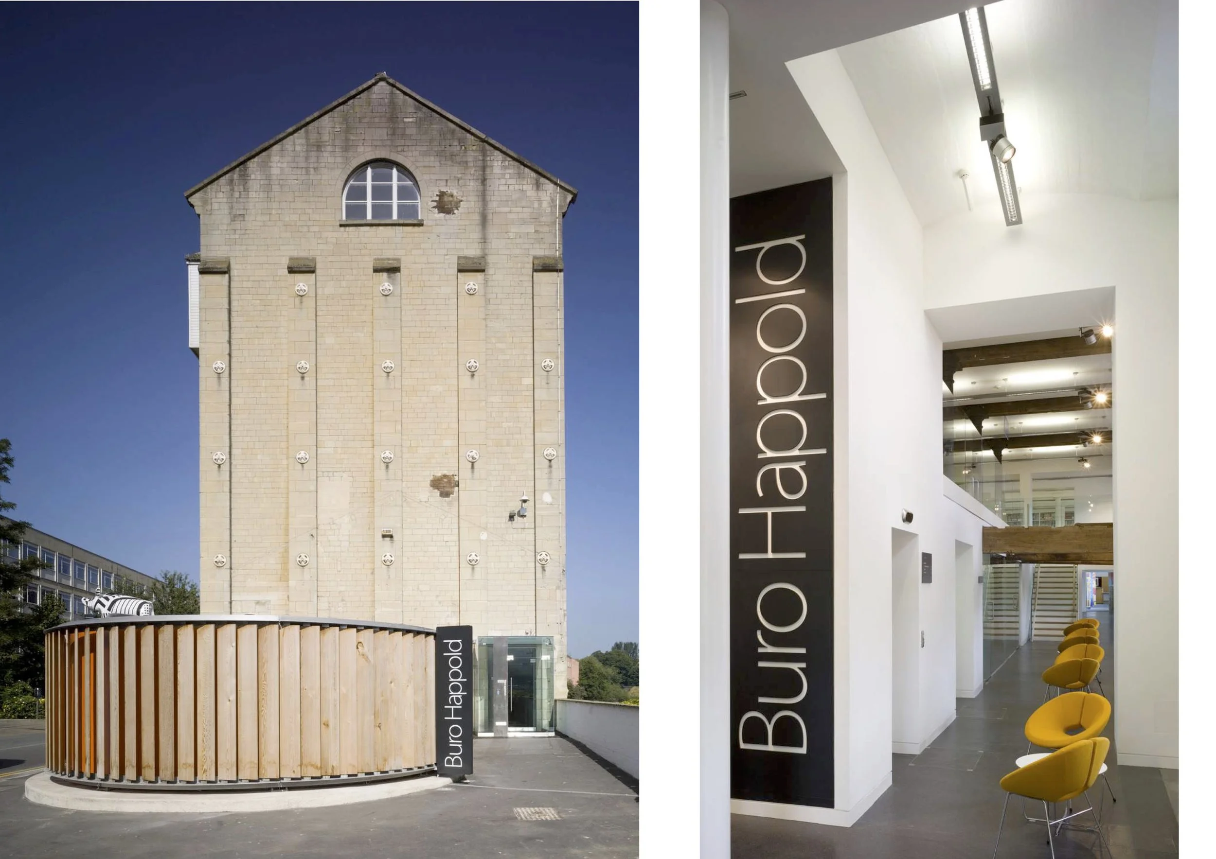 We were asked to look at an extensive interior re-modelling of Buro Happold’s HQ in Bath, to improve the entrance sequence and connection to the river.