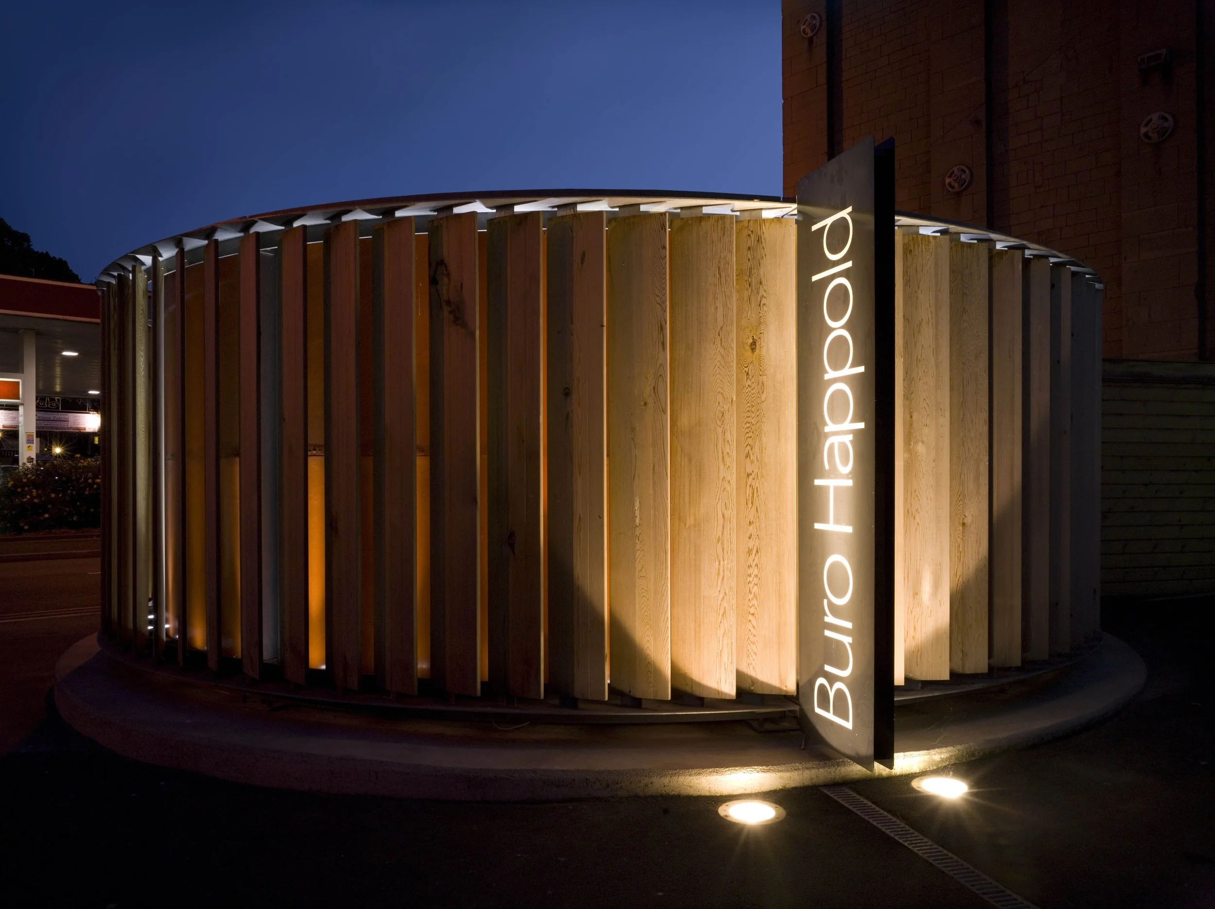 The project also included the re-cladding of an existing sub station on the building approach, to signal the entrance, guiding visitors to the door.